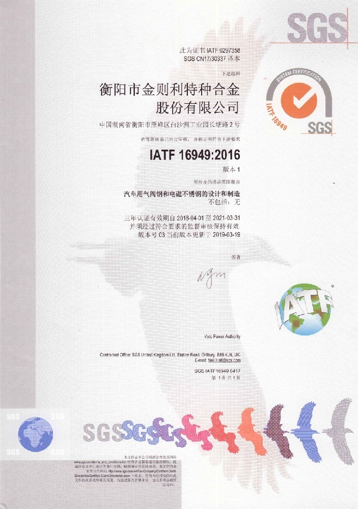 IATF 16949管理体系证书 |